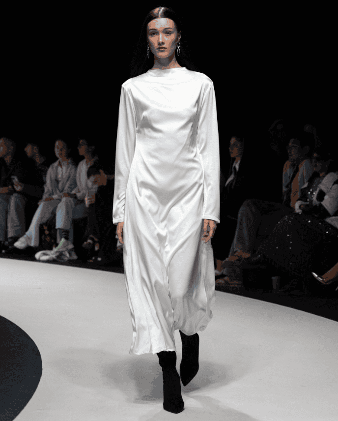 MD29 showcased a sophisticated formal-themed collection, including deconstructed blazers in the shades of grey, camel, and dark blue. In an attempt to create a trendy look, the Saudi designer presented bubble skirts for stylish day-to-night outfits.
