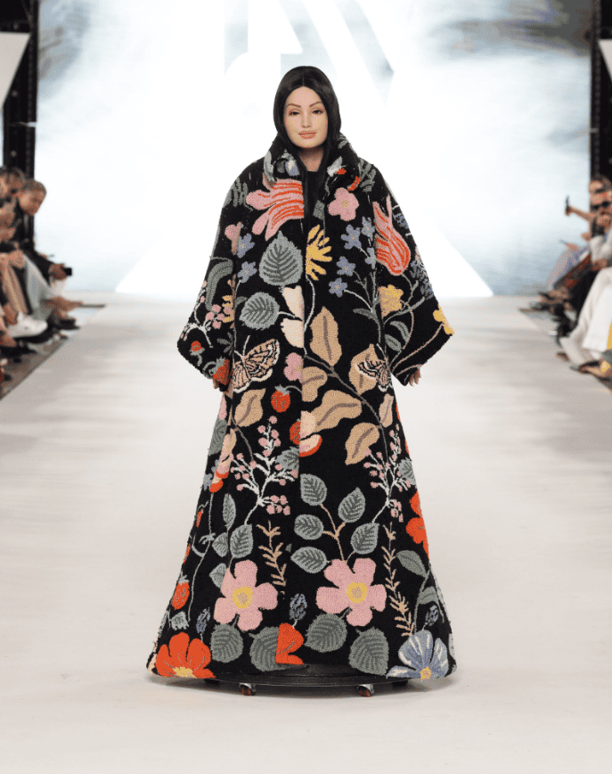 ArAm by Arwa Al-Ammari captivated audiences with a glamorous and creative collection inspired by Saudi Arabia’s natural heritage. Her designs featured animals associated with the Saudi wildlife, such as the oryx, the Arabian leopard, and the Arabian wolf.
